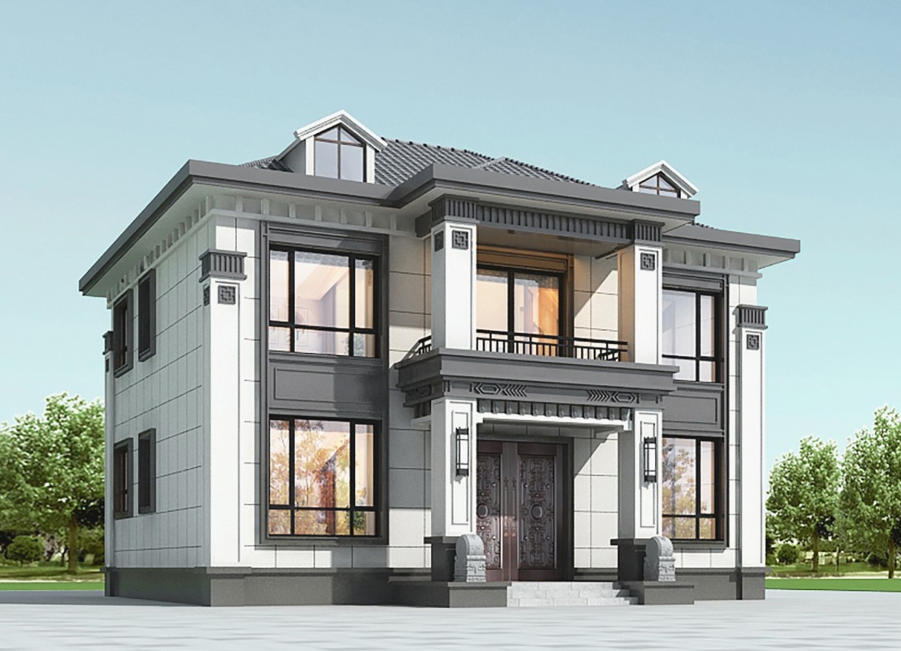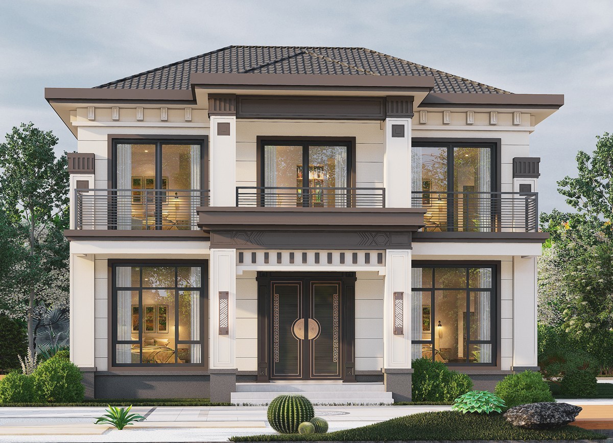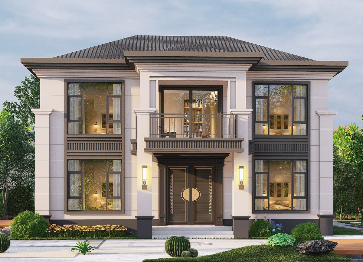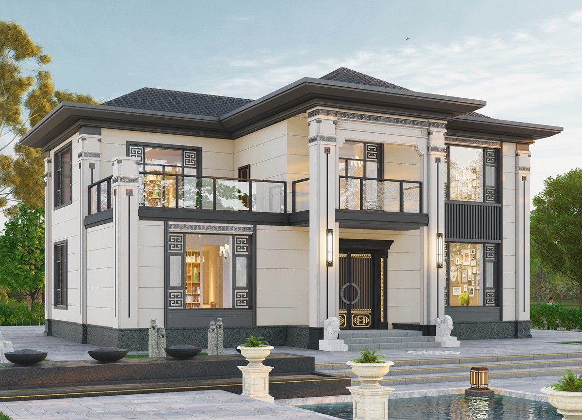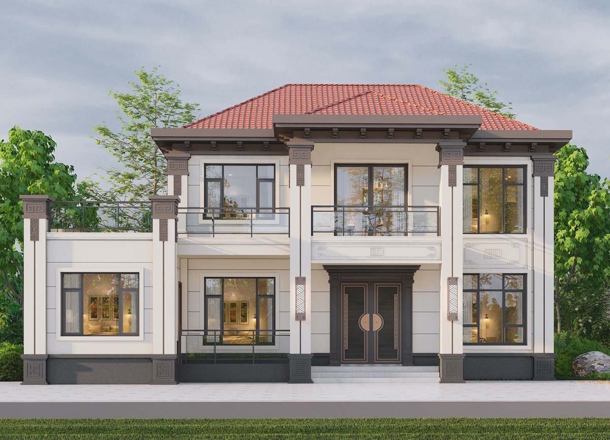 河北005 两层新中式(11.36x11.76米)-【易设计】