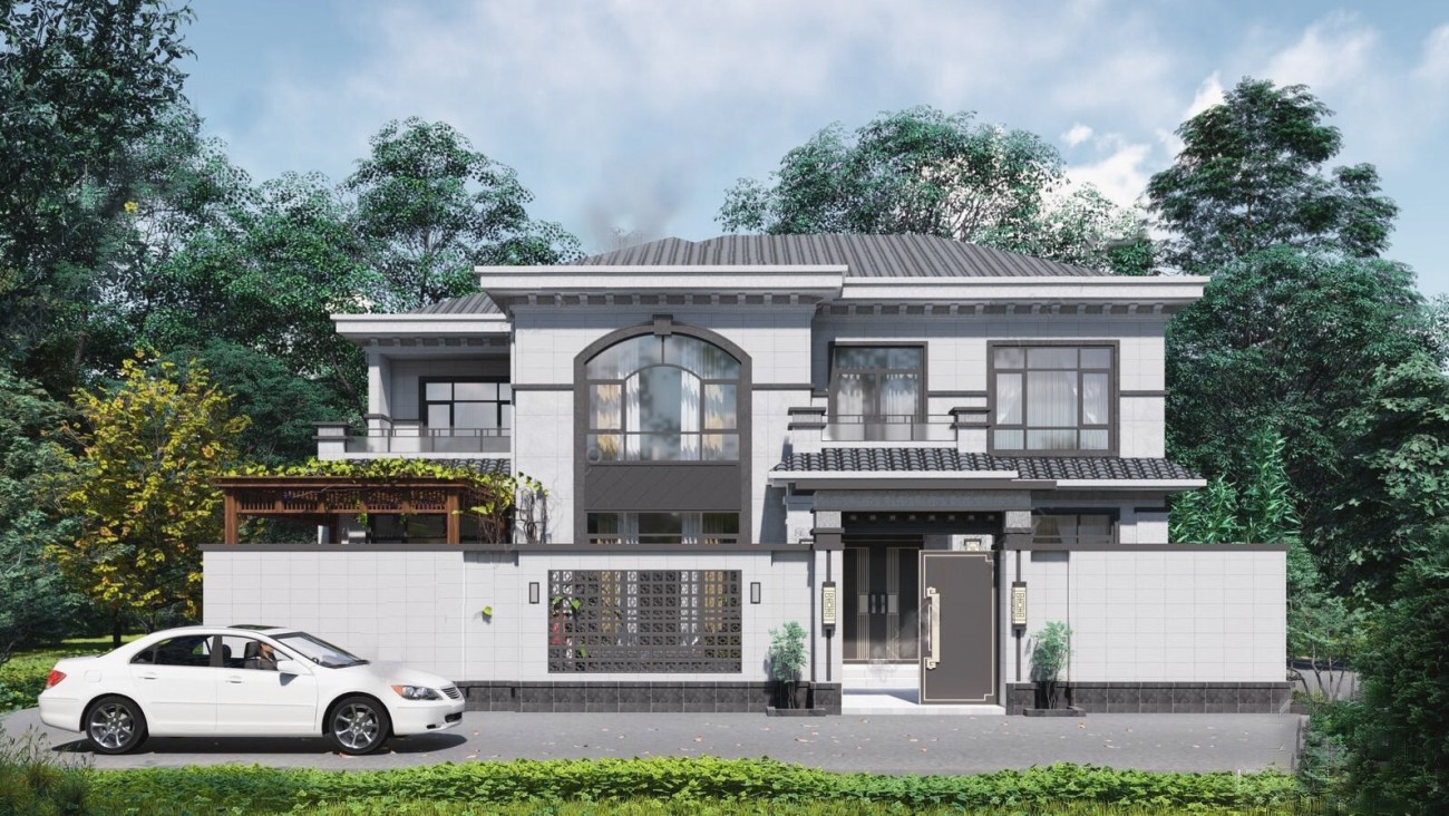 河北011 两层新中式(15.43x12.66米)-【易设计】